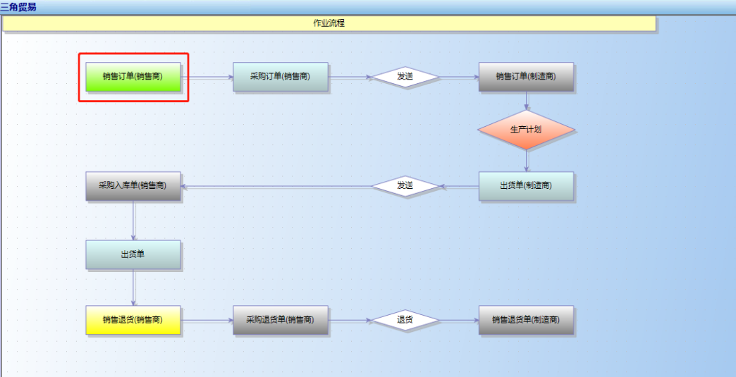 首先,三角贸易大多是跨域公司或者多个公司才会用到的功能,例如A公司总部在北京,它还有几个分公司,分别在其它的区域,这时候相互贸易或者信息共享的时候会产生数据关联,这时候就要用到多角贸易逻辑;
